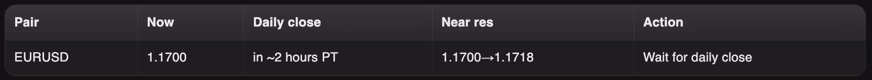 Want me to compute exact stop and position size if the daily closes above 1.1700?
